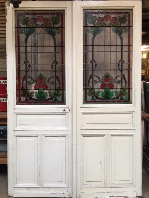 Glas in Lood Deuren Art Nouveau 218cm hoog - 75cm breed per deur Prachtig glaswerk Prijs set 895 euro