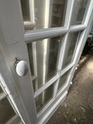 Deze 3 slag deuren hebben kleine raampjes en de set kan geheel open - 2 deuren kunnen open of 1 enkele deur kan open.