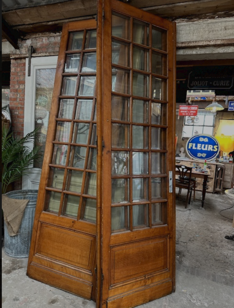 Prachtig antieke eikenhouten deuren met kleine raampjes mooie panelen.