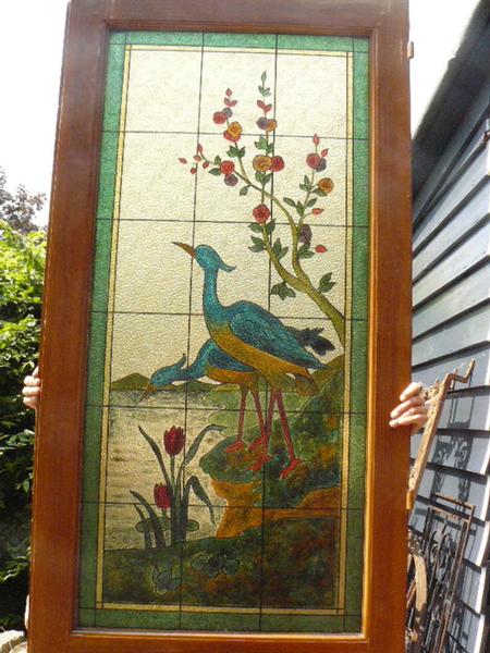 Unieke 3-slag, zeer fraai geschilderd op glas.