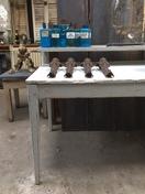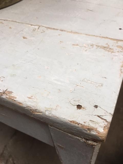ANTIEKE TAFEL UIT FRANSE BLOEMENWINKEL prachtige patine Leuke smalle top boven tafel Ideaal als keukentafel - bureau - sitetable 495 euro