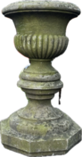 Dit is een gekapte tuinvaas met sokkel van arduinsfeer - patine - origineel