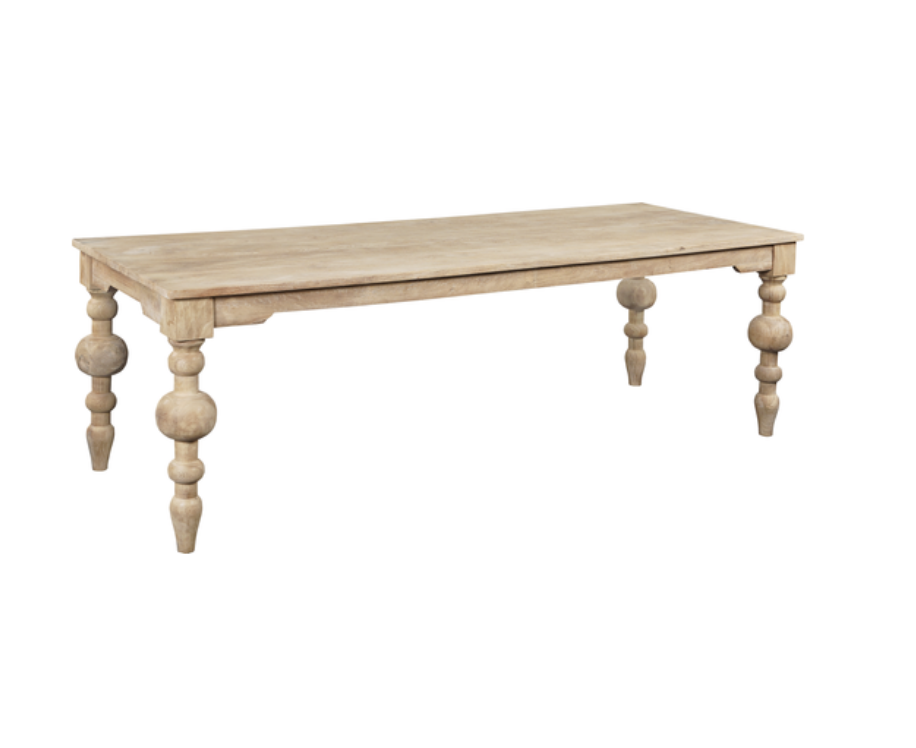 Lange stoere tafel met prachtige uitstraling en de robuuste ronde poten maken de tafel helemaal af.