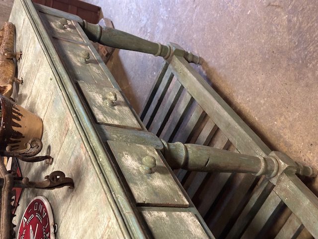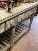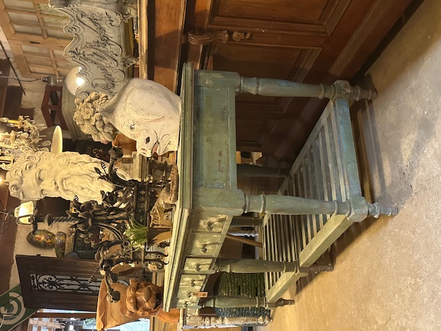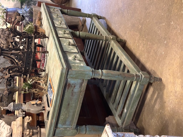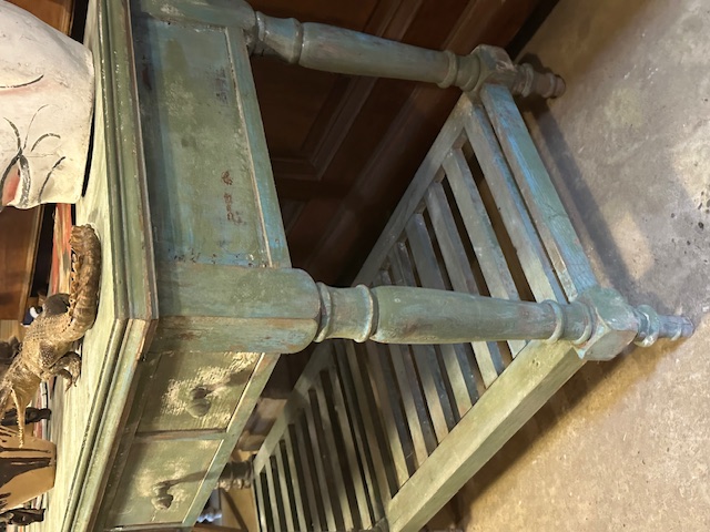 Stoer robuust meubel vol laden, dikke poten en prachtige kleur.