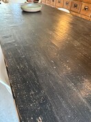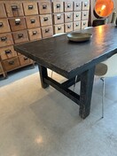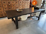 Stoere lange tafel van 245cm met prachtig zwarte geleefde kleur.