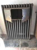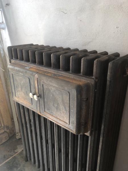OUDE RADIATOR OP POOTJES MET OVEN Oude Franse radiator met oven uniek exemplaar maten ca: 85cm breed - 108cm hoog Prijs