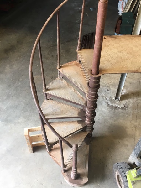Antieke draaitrap UNIEKE GIETIJZEREN ANTIEKE DRAAITRAP 5,5 MTR HOOG - DIAMETER 120CM COMPLETE TRAP INCL LEUNING UNIEK STUK