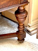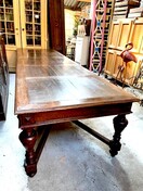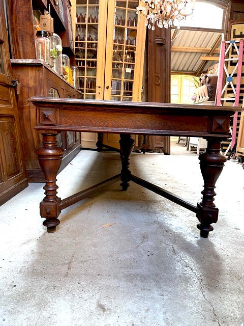 Antieke Franse lange tafel met dikke ronde poten en travers.