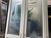 Antieke ensuite deuren met geëtst glas (bloemen)