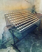 Dit is de antieke kandelaar die in de kerk stond waar je de kaarjes kon kopen en kon aansteken.