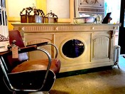 Antieke balie met panelen en spiegel
