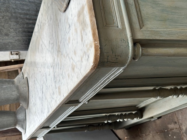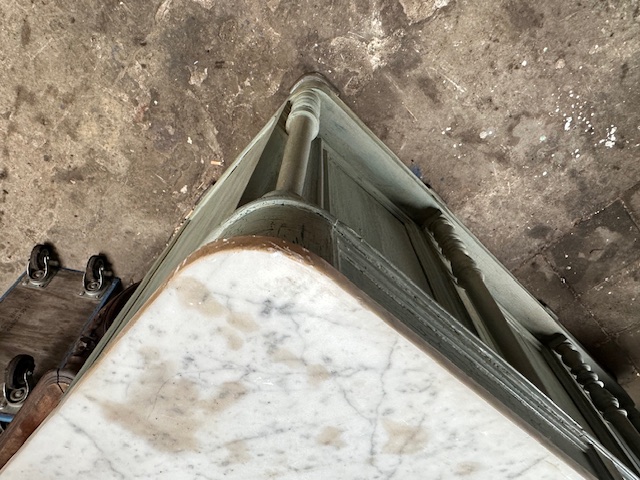 Deze lichtgroene toonbank komt uit bloemisterij Frankrijk