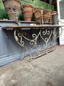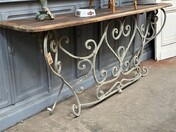 decoratief ijzeren onderstel met robuust houten blad