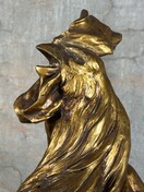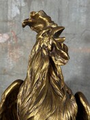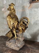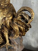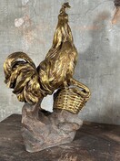 Grote antieke kip van terra cotta gesigneerd met bladgoud