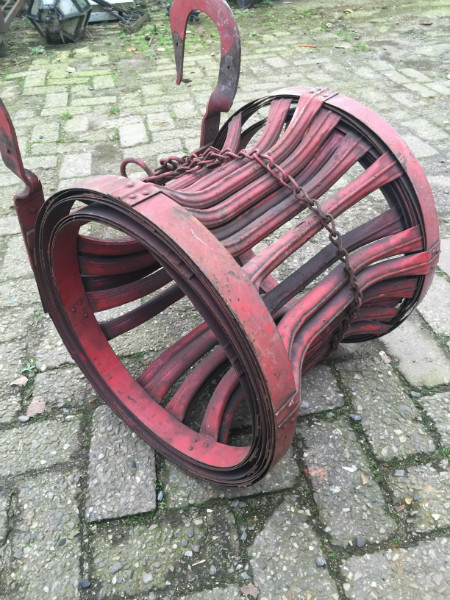 Antieke industriele brandladder uniek exemplaar uit Frankrijk zeer decoratief met stoere klinknagels ca 5 mtr lang 345 euro