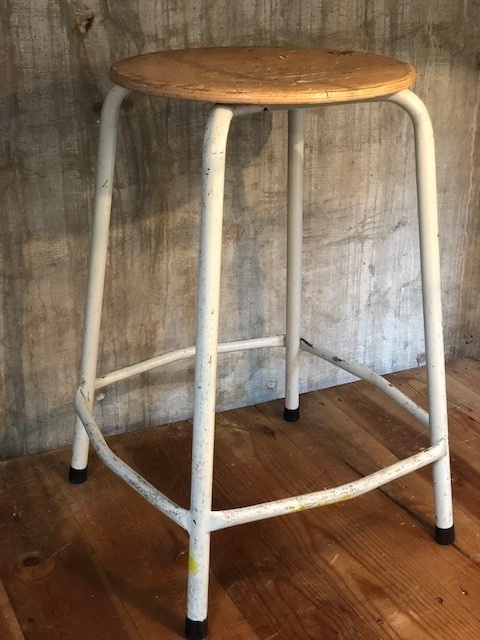 INDUSTRIEEL ANTIEK Robuuste krukken met houten zitting mooie geleefde patine 60cm hoog 65 euro per stuk